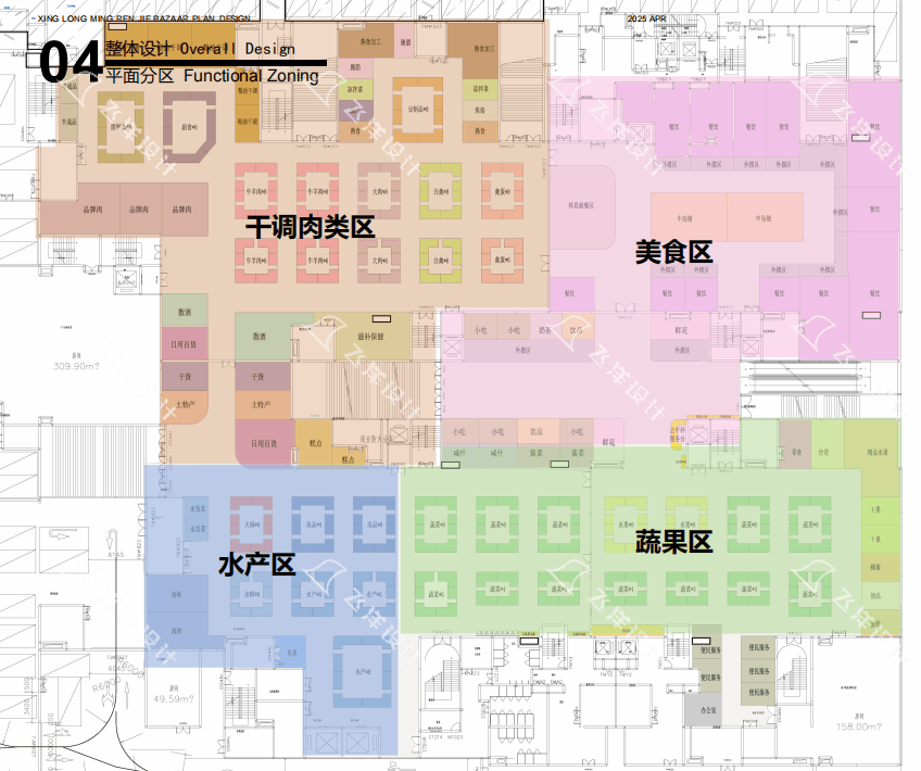 水產(chǎn)區(qū):左下角近貨梯,專用排水+ 獨(dú)立通風(fēng),物流便捷。?